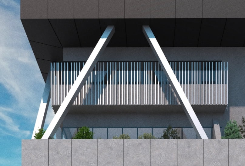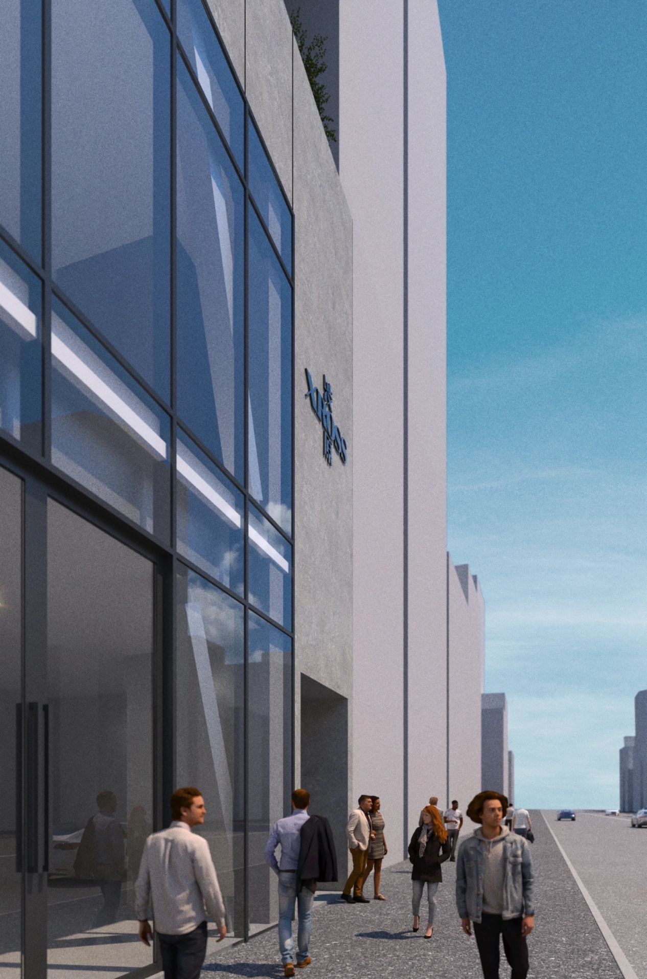 クライアントからの主な要望は、テナントスペースの最⼤化、デジタルサイネージの導⼊、そして構造的な柱の細化。