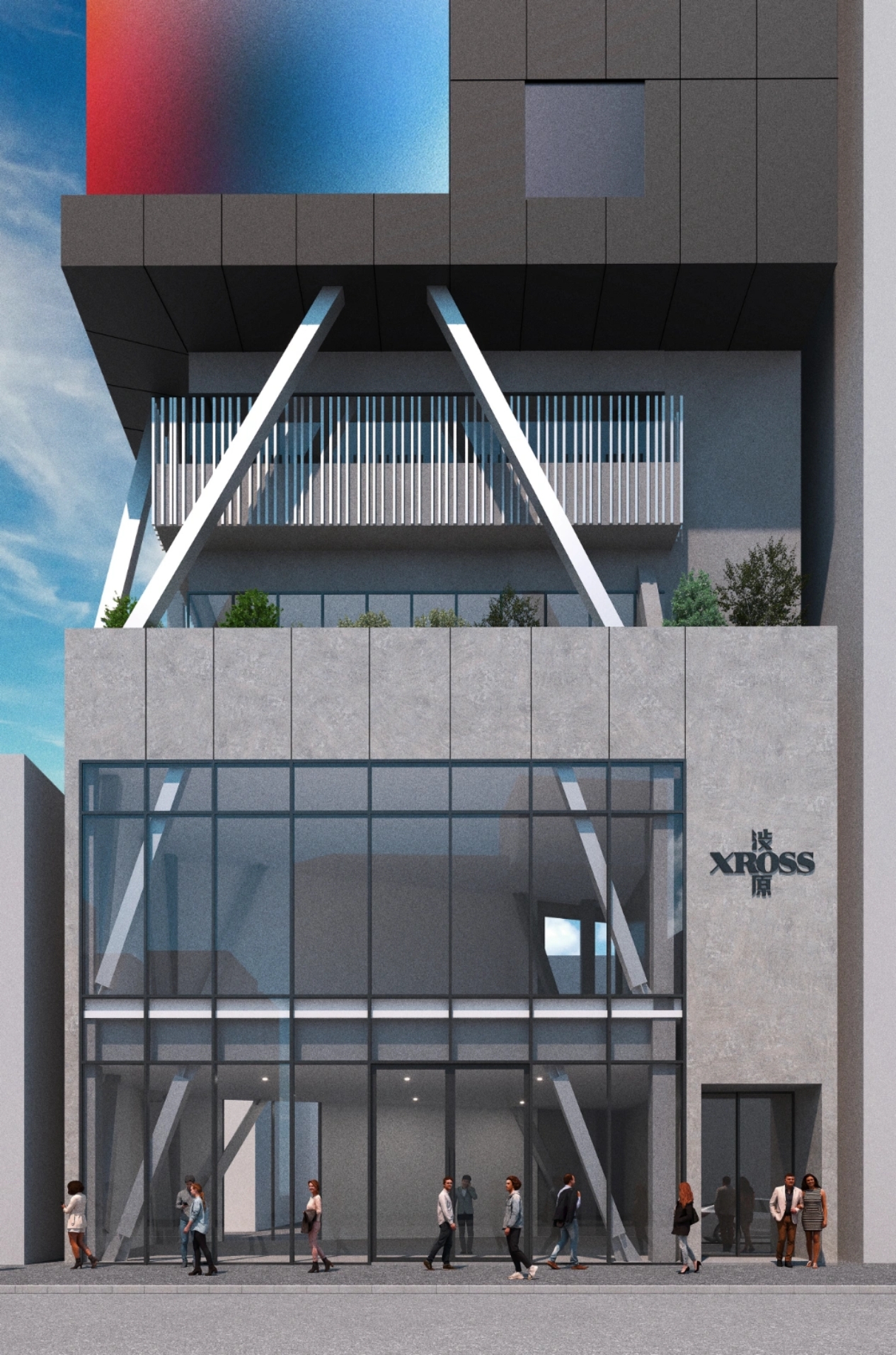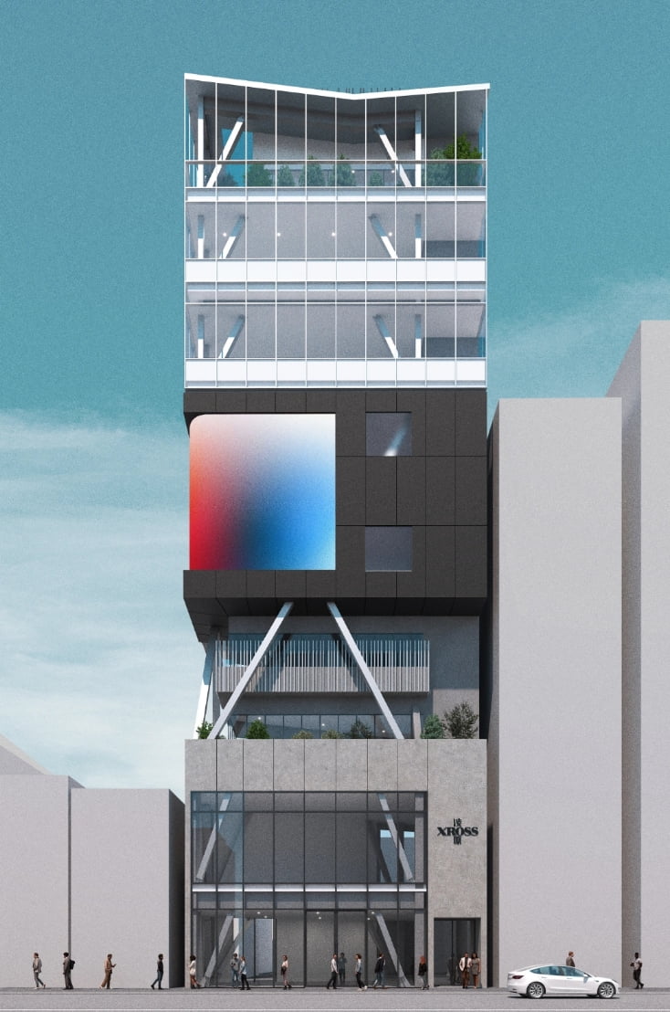 原宿と渋谷が交差する神宮前6丁目に建つ「渋原XROSS」は、原宿の新たなランドマークとなり、情報発信の場として期待させる、プログラム複合型テナントビル。