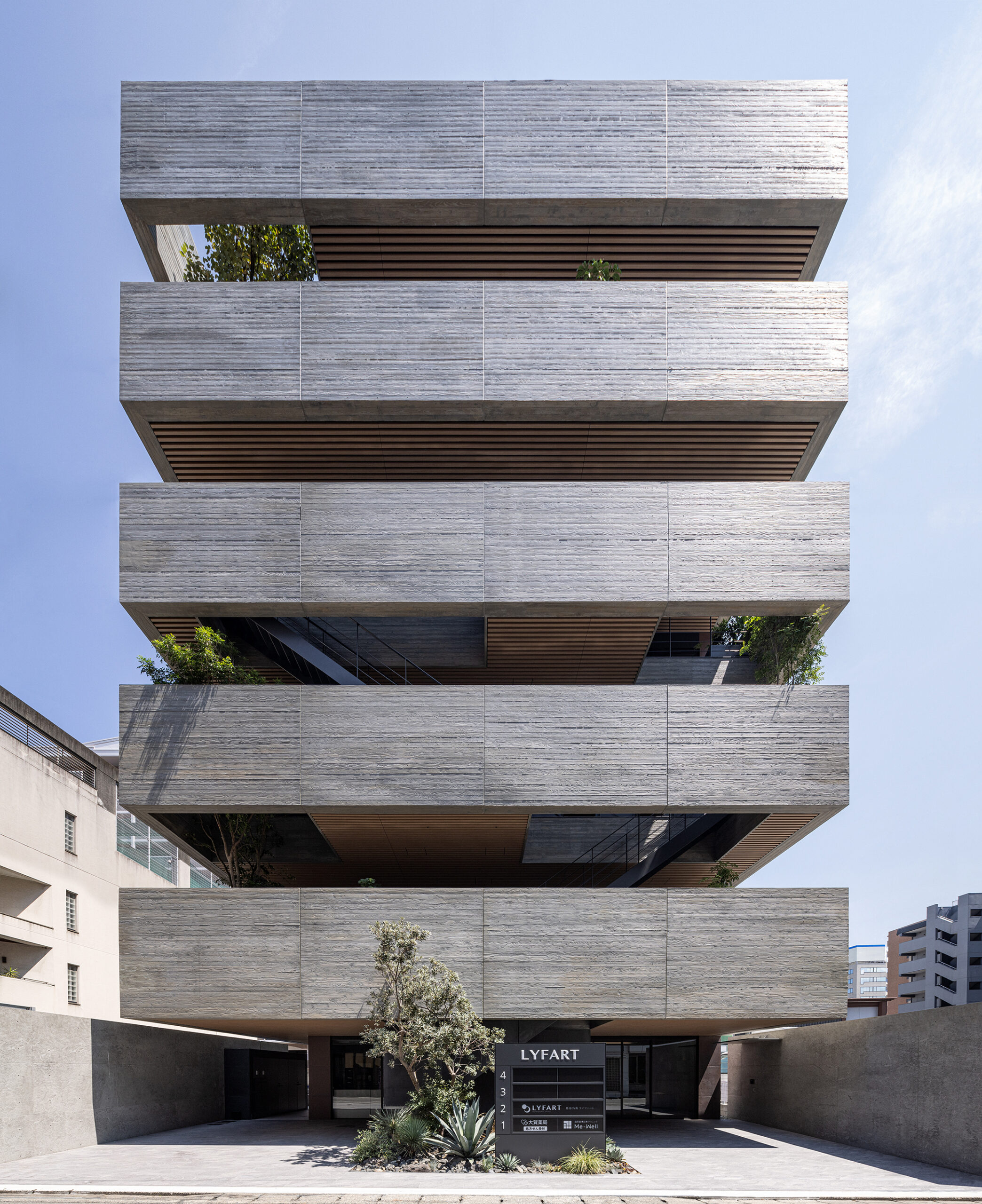 いでた平成眼科クリニック 6枚の帯を表現するPC梁によるラーメン構造